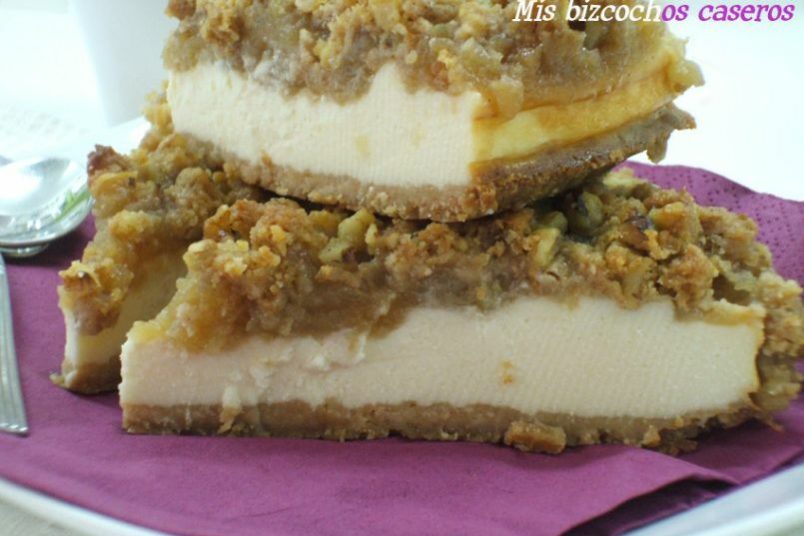Tarta de queso y manzana con streusel de nueces